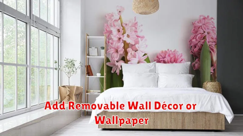 Temporary fabric wall hangings, secured with removable adhesive strips or tacks, also offer a non-damaging solution. These can introduce color, texture, and visual interest. Choose lightweight fabrics and ensure proper anchoring to prevent damage to the walls.