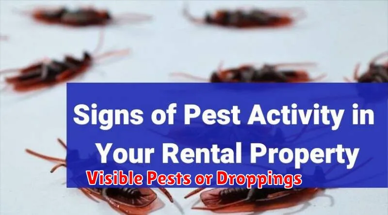 The presence of visible pests, such as insects or rodents, is a serious red flag. Cockroaches, ants, bed bugs, or mice droppings are clear indicators of an existing infestation. This suggests a lack of cleanliness and preventative pest control measures.